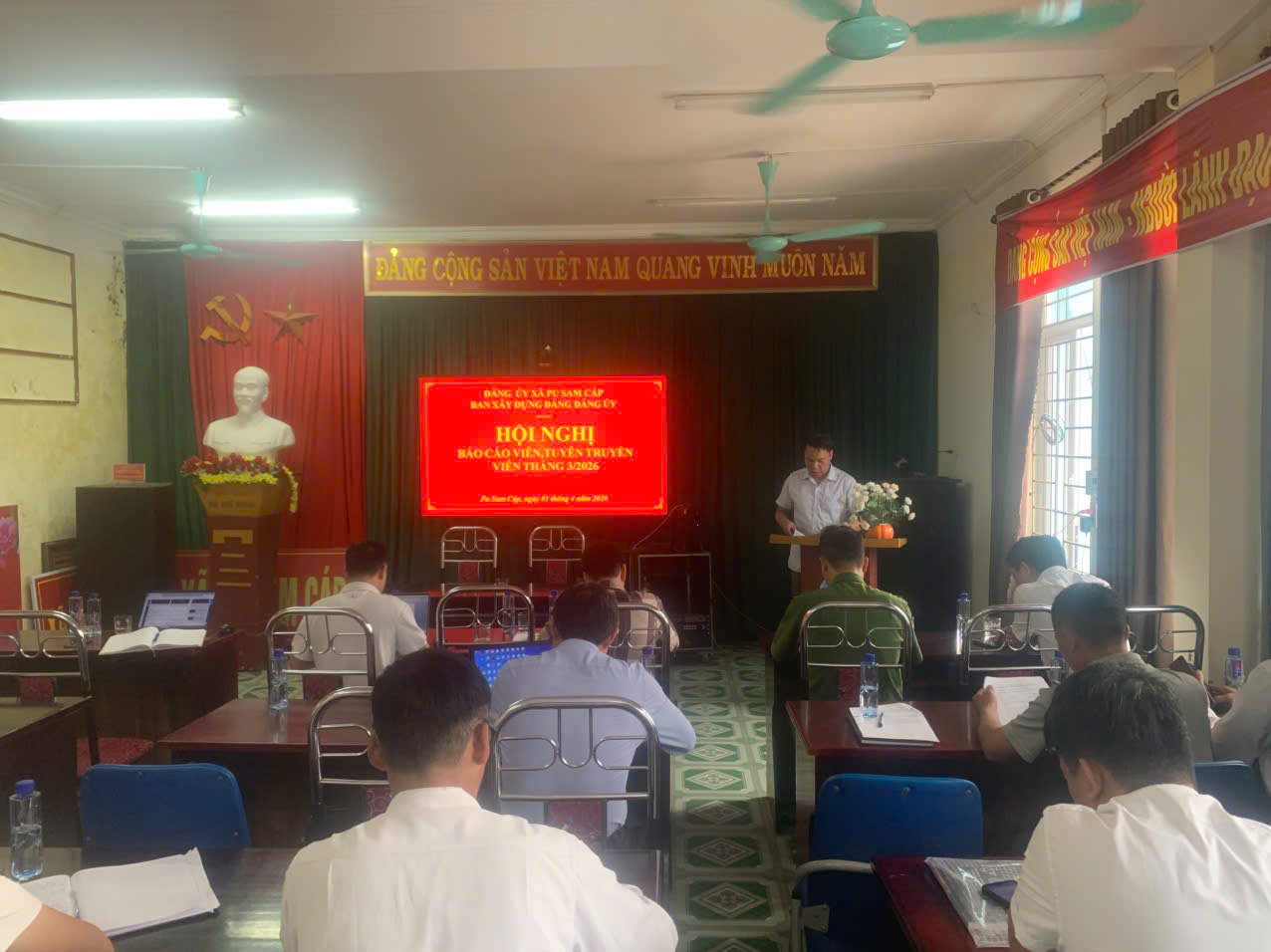 Chiều ngày 01/4/2026, tại Hội trường tầng 2 xã Pu Sam Cáp (hội trường xã Pa Khoá cũ), Ban Xây dựng Đảng Đảng ủy xã Pu Sam Cáp đã tổ chức Hội nghị báo cáo viên, tuyên truyền viên tháng 3/2026. Hội nghị được tổ chức nhằm cung cấp thông tin thời sự, định hướng công tác tuyên truyền và triển khai các nhiệm vụ trọng tâm trong thời gian tới.