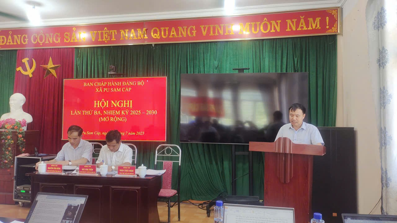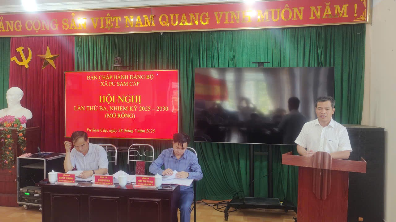 Hội nghị lần thứ 3 Ban Chấp hành mở rộng Đảng ủy xã Pu Sam Cáp, nhiệm kỳ 2025–2030 đã diễn ra thành công, tạo tiền đề quan trọng cho việc tổ chức Đại hội Đảng bộ xã lần thứ nhất sau sáp nhập, đồng thời đề ra những định hướng, giải pháp cụ thể trong phát triển kinh tế - xã hội, củng cố quốc phòng – an ninh và xây dựng hệ thống chính trị vững mạnh trong thời gian tới.