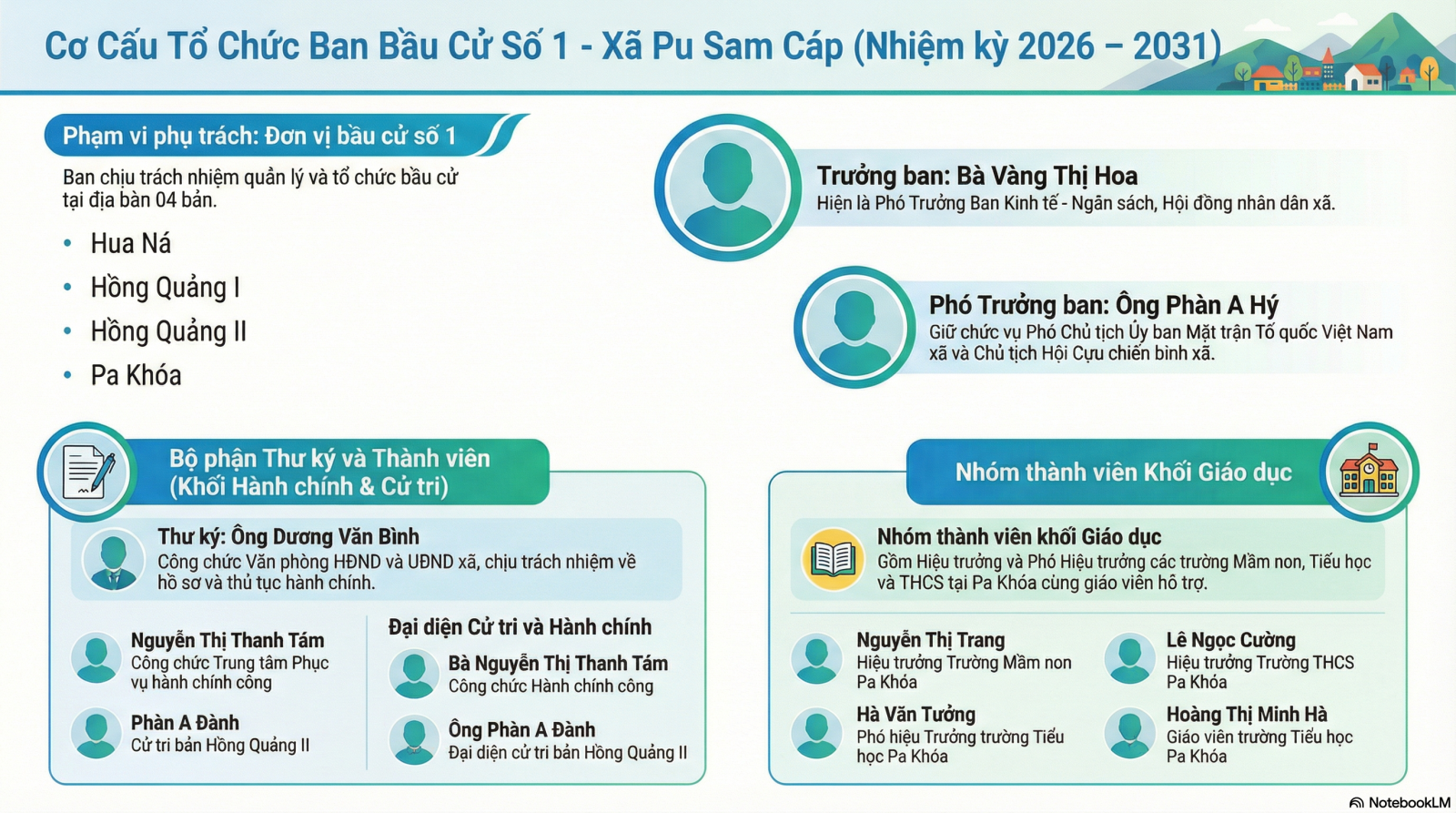 Thứ tư, 25/02/2026 | 10:53 A- A A+ | DANH SÁCH THÀNH VIÊN 5 BAN BẦU CỬ XÃ PU SAM CÁP Chia sẻ Lưu Tổng số điểm của bài viết là: 0 trong 0 đánh giá Click để đánh giá bài viết