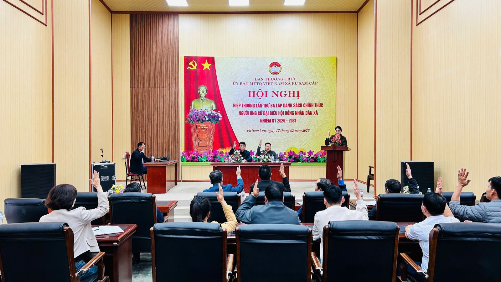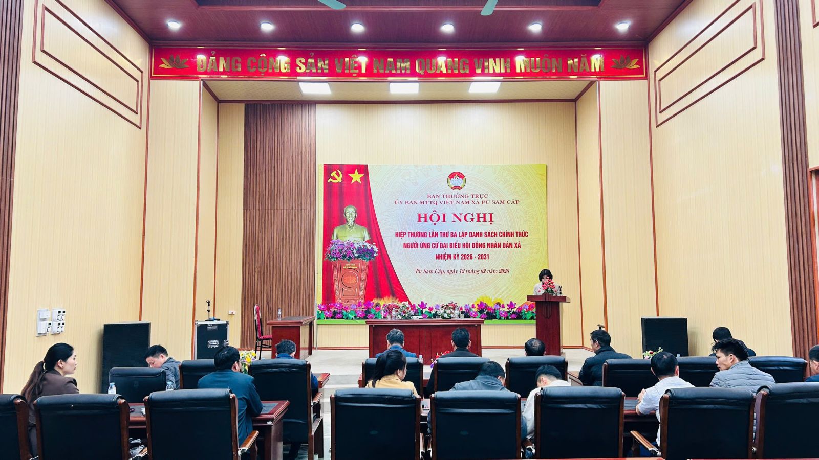 Ngày 12/02/2026, Ban Thường trực Ủy ban MTTQ Việt Nam xã Pu Sam Cáp tổ chức Hội nghị hiệp thương lần thứ ba nhằm lập danh sách chính thức những người đủ tiêu chuẩn ứng cử đại biểu Hội đồng nhân dân xã khóa XXII, nhiệm kỳ 2026 –2031.