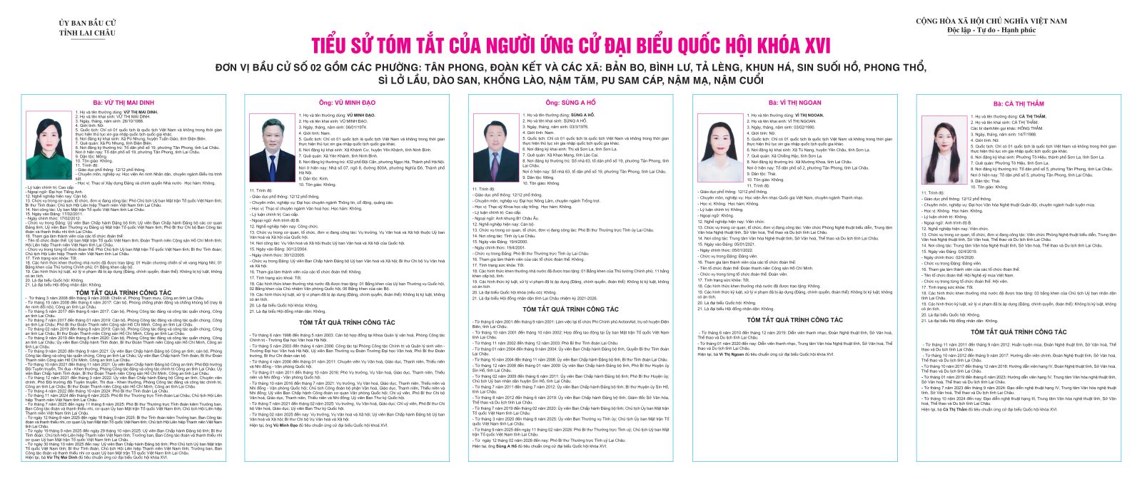 TIỂU SỬ TÓM TẮT CỦA NGƯỜI ỨNG CỬ ĐẠI BIỂU QUỐC HỘI KHÓA XVI (ĐƠN VỊ BẦU CỬ SỐ 02 BAO GỒM XÃ PU SAM CÁP)