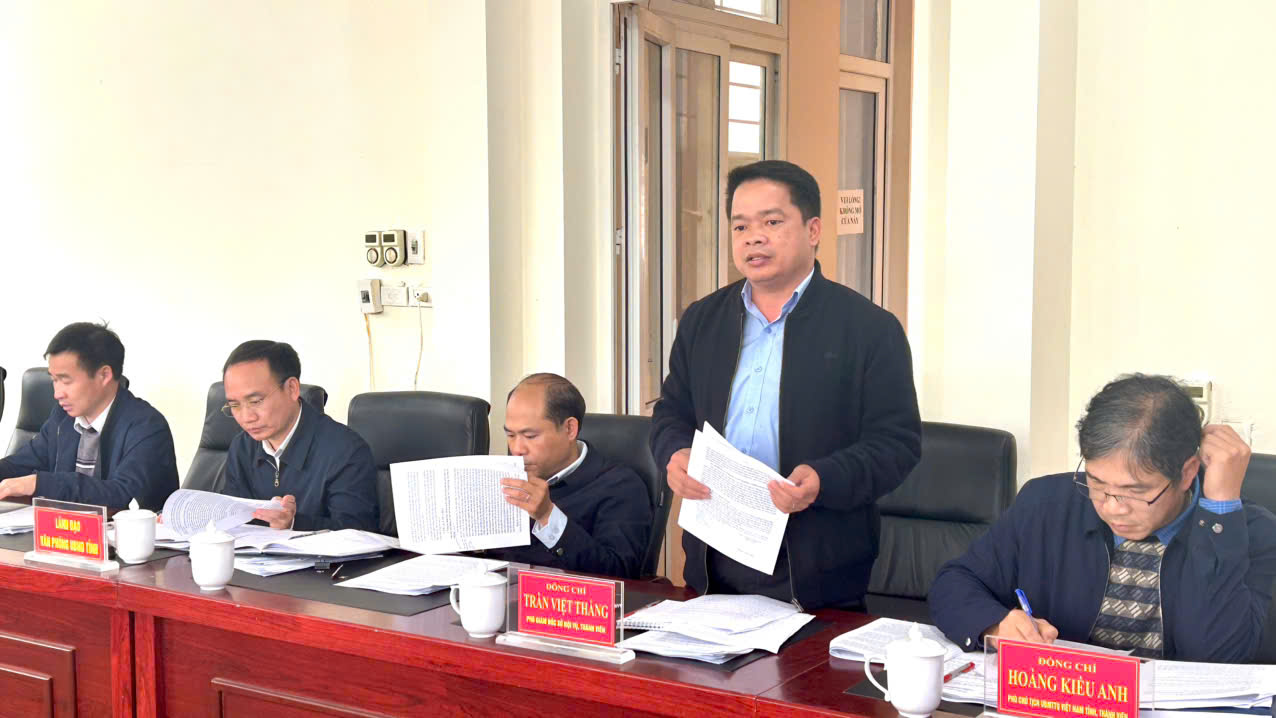 Đồng chí Bùi Văn Tuấn - Bí thư Đảng ủy; Chủ tịch HĐND xã đóng góp, giải trình các ý kiến