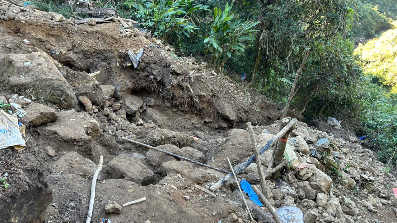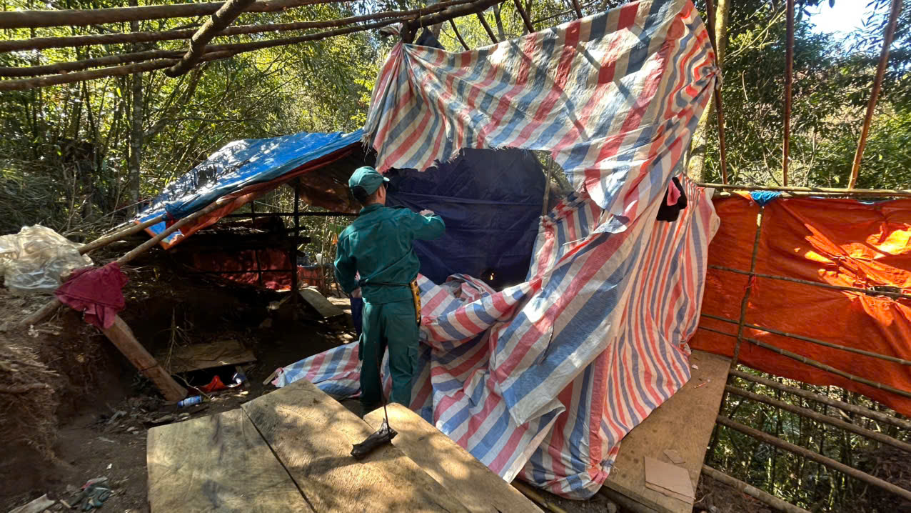 Tại hiện trường khu vực bãi 7 có dấu hiệu diễn ra hoạt động khai thác khoáng sản vàng trái phép, phát hiện có 04 khung lán các đối tượng đã tháo dỡ bạt, đồ dùng sinh hoạt khỏi hiện trường; khu vực xung quanh lán phát hiện có 08 hầm vàng cũ và hầm mới, không phát hiện có máy móc và đối tượng khai thác trái phép tại khu vực hiện trường.