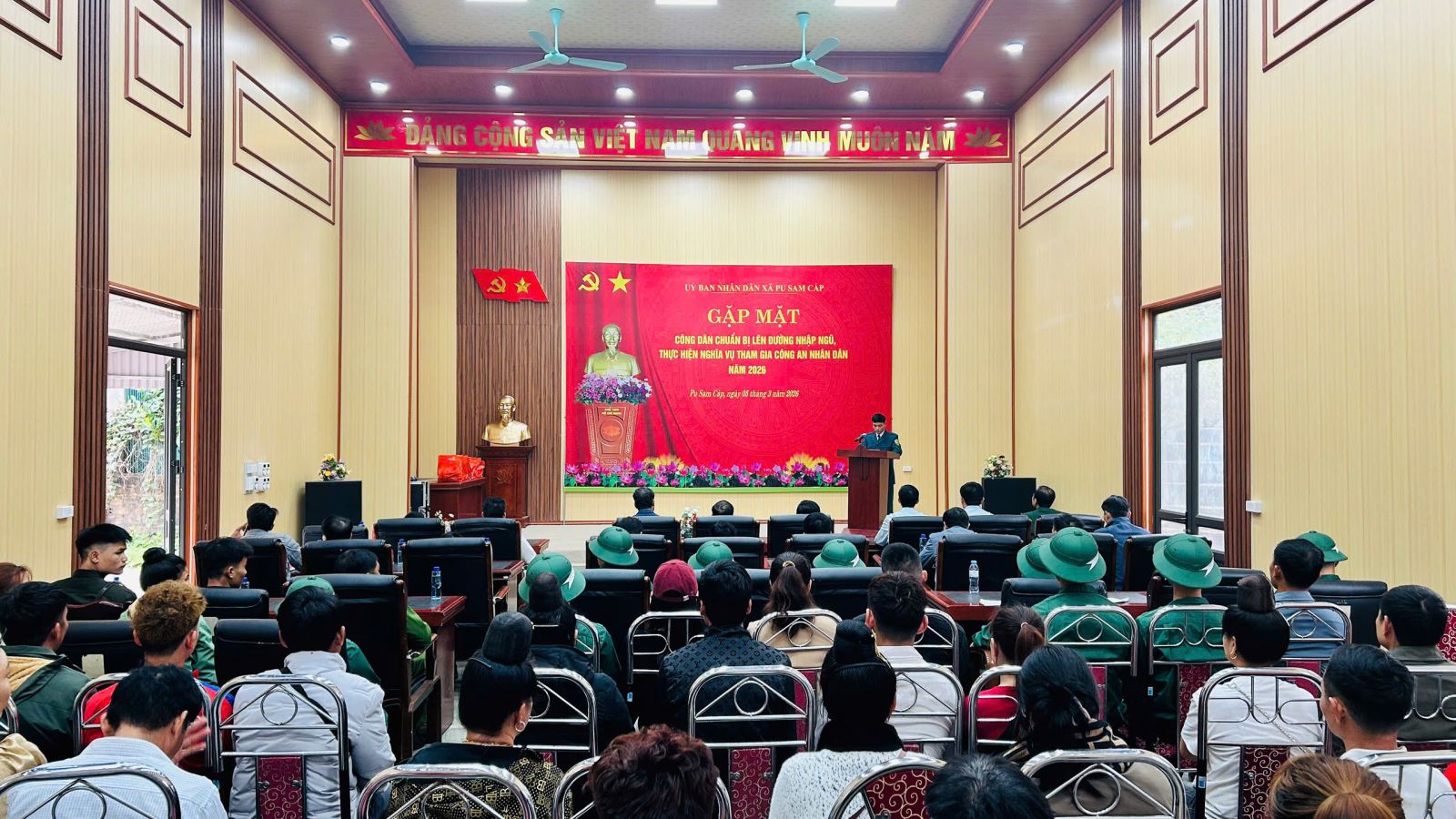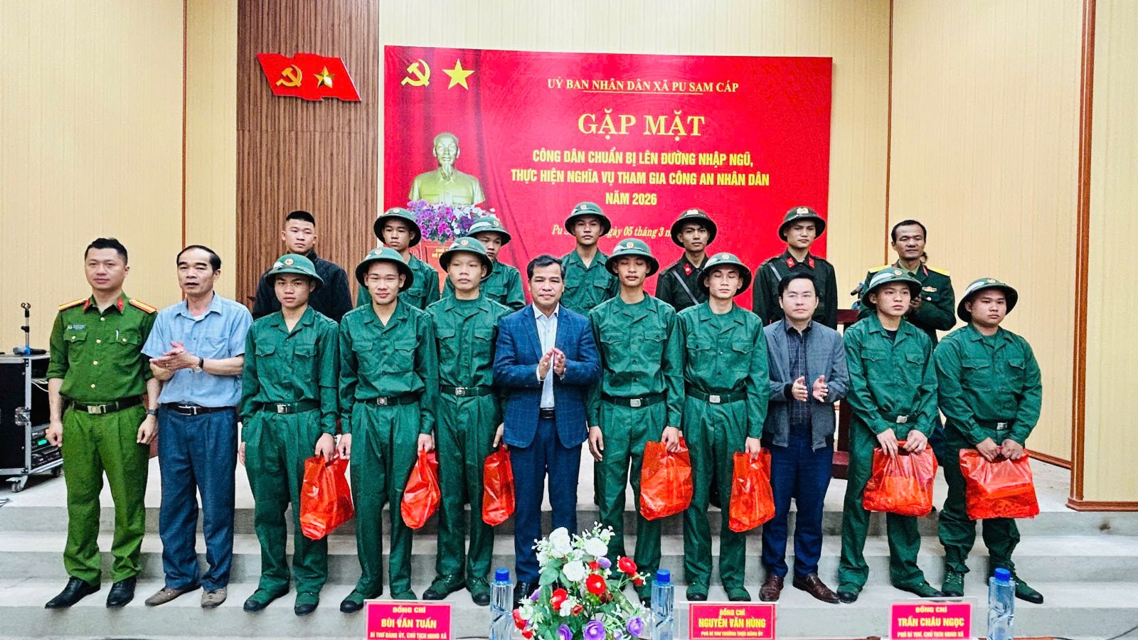Sáng ngày 05/3/2026, UBND xã Pu Sam Cáp tổ chức Chương trình gặp mặt, động viên các công dân chuẩn bị lên đường nhập ngũ, thực hiện nghĩa vụ quân sự và tham gia nghĩa vụ công an nhân dân năm 2026. Buổi gặp mặt diễn ra trong không khí trang trọng, ấm áp và đầy khí thế, thể hiện sự quan tâm của cấp ủy, chính quyền và Nhân dân đối với các tân binh trước ngày lên đường làm nhiệm vụ bảo vệ Tổ quốc.