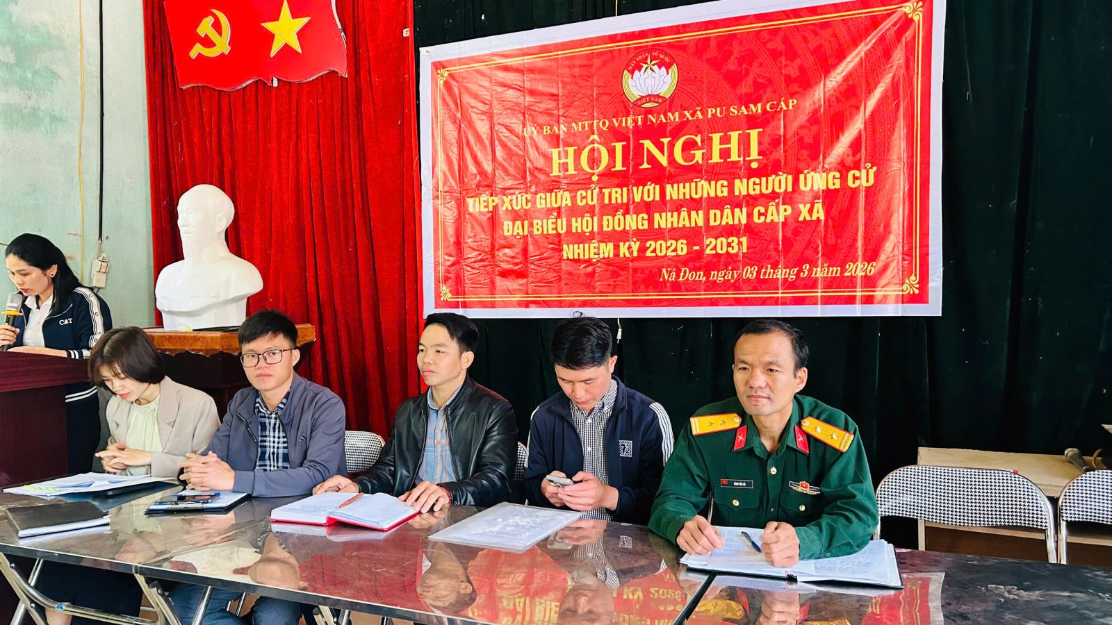 Vừa qua, UB MTTQ xã Pu Sam Cáp tổ chức Hội nghị tiếp xúc giữa cử tri với những người ứng cử đại biểu Hội đồng nhân dân xã, nhiệm kỳ 2026 – 2031 tại đơn vị bầu cử số 4 gồm 3 bản Ná Đon, Noong Om, Pắn Ngọi.