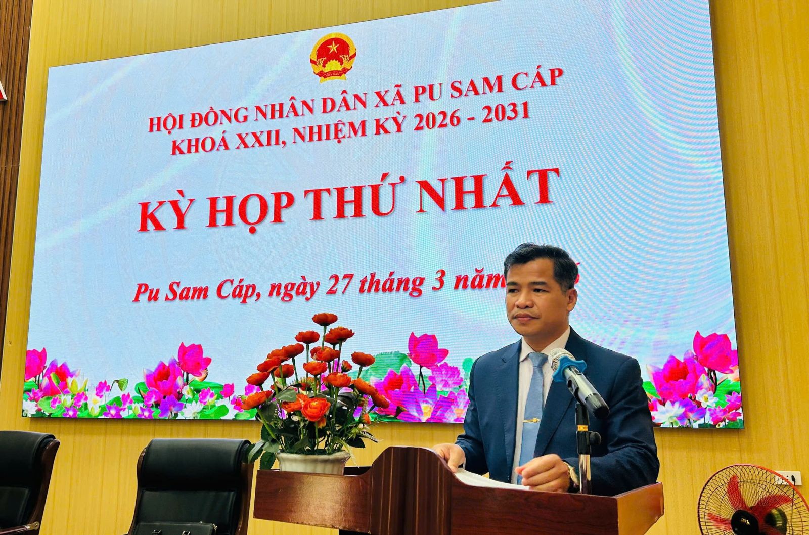 Sáng 27/3/2026, HĐND xã Pu Sam Cáp khai mạc trọng thể Kỳ họp thứ nhất HĐND xã khoá XXII, nhiệm kỳ 2026 - 2031. Dự kỳ họp có đồng chí Bùi Văn Tuấn – Bí thư Đảng ủy xã, các đồng chí thường trực Đảng uỷ, lãnh đạo HĐND, UBND, UB MTTQ Việt Nam xã; đại diện lãnh đạo một số cơ quan, đơn vị trên địa bàn cùng các đại biểu trúng cử HĐND xã khoá XXII, nhiệm kỳ 2026 - 2031.