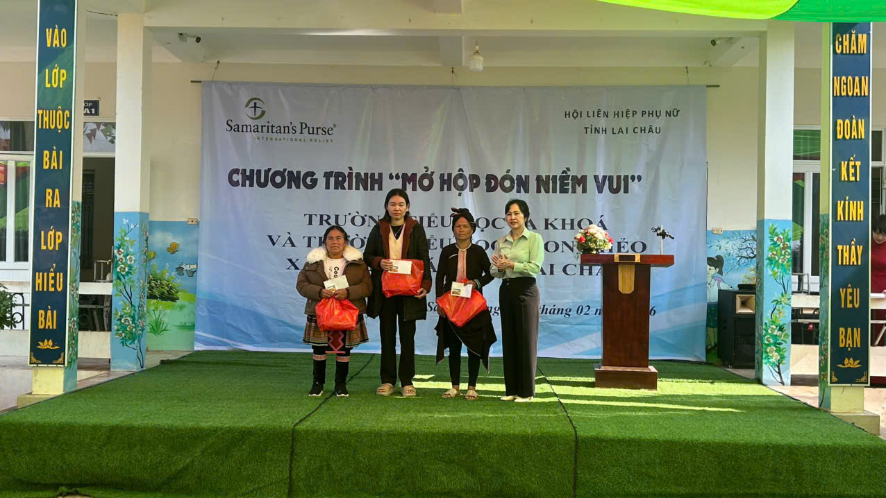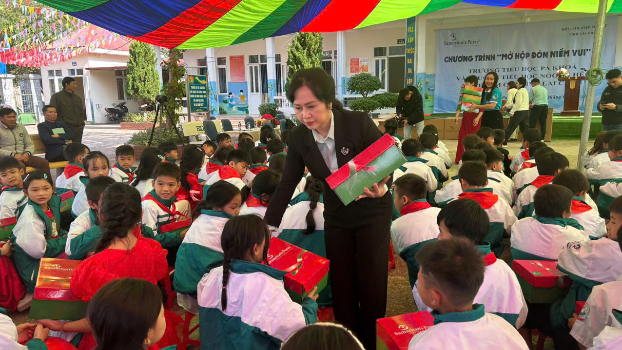 Sáng ngày 04/02/2026, tại Trường Tiểu học Pa Khóa, xã Pu Sam Cáp. Hội Liên hiệp Phụ nữ tỉnh Lai Châu phối hợp cùng tổ chức nhân đạo quốc tế Samaritan's Purse triển khai Chương trình “Mở hộp đón niềm vui”, trao quà cho học sinh với mong muốn mang đến sự sẻ chia, động viên tinh thần và tiếp sức các em vươn lên trong học tập.