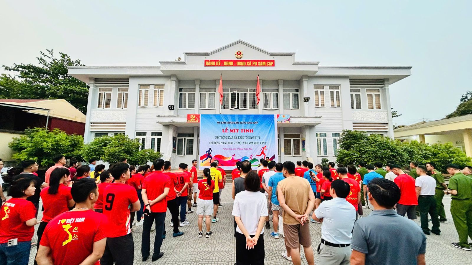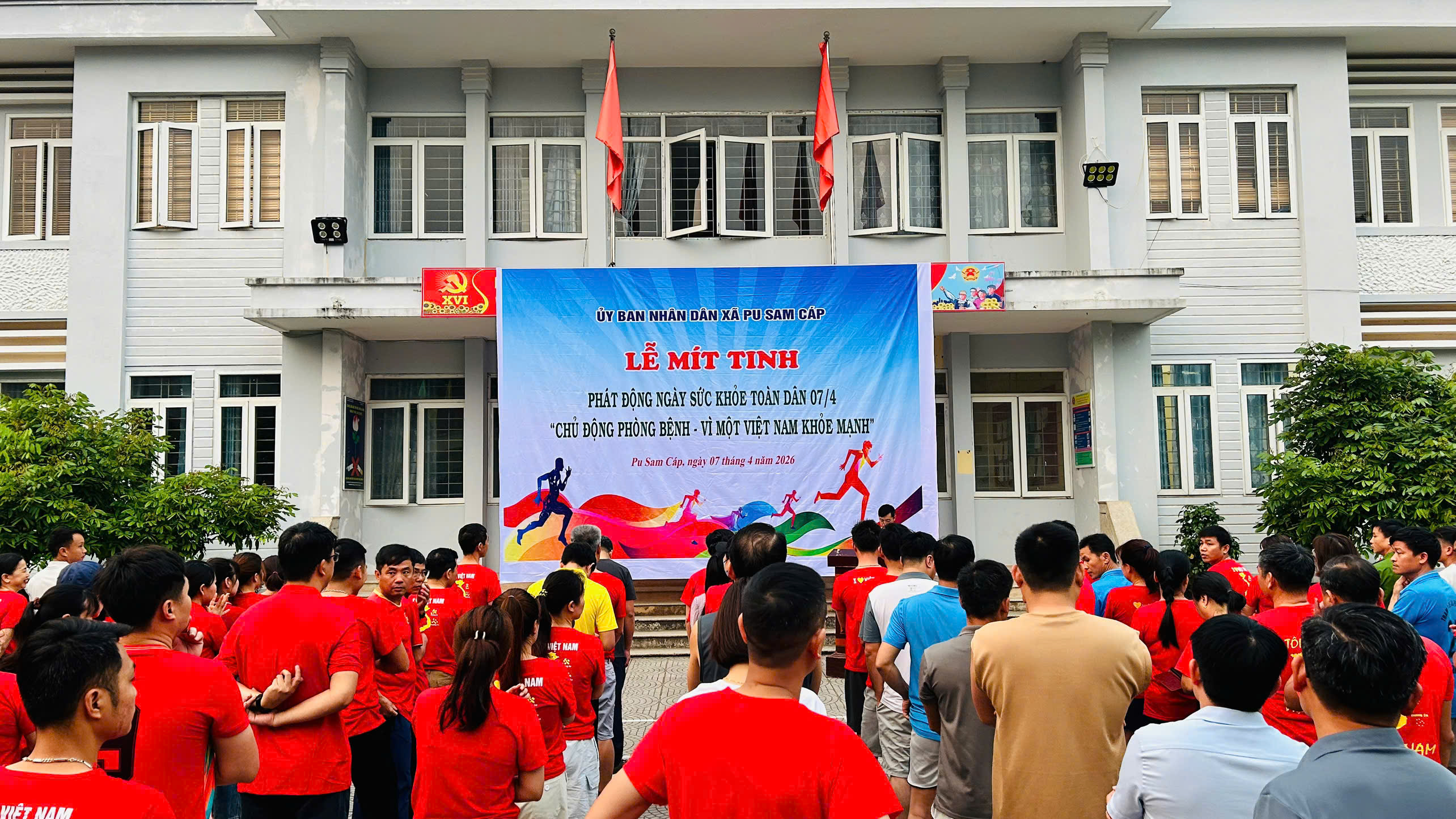 Thực hiện Kế hoạch số 427/KH-UBND ngày 01/4/2026, sáng ngày 07/4/2026, UBND xã Pu Sam Cáp đã tổ chức Lễ mít tinh và chạy bộ hưởng ứng Ngày Sức khỏe toàn dân tại sân trụ sở Đảng ủy, HĐND, UBND xã.