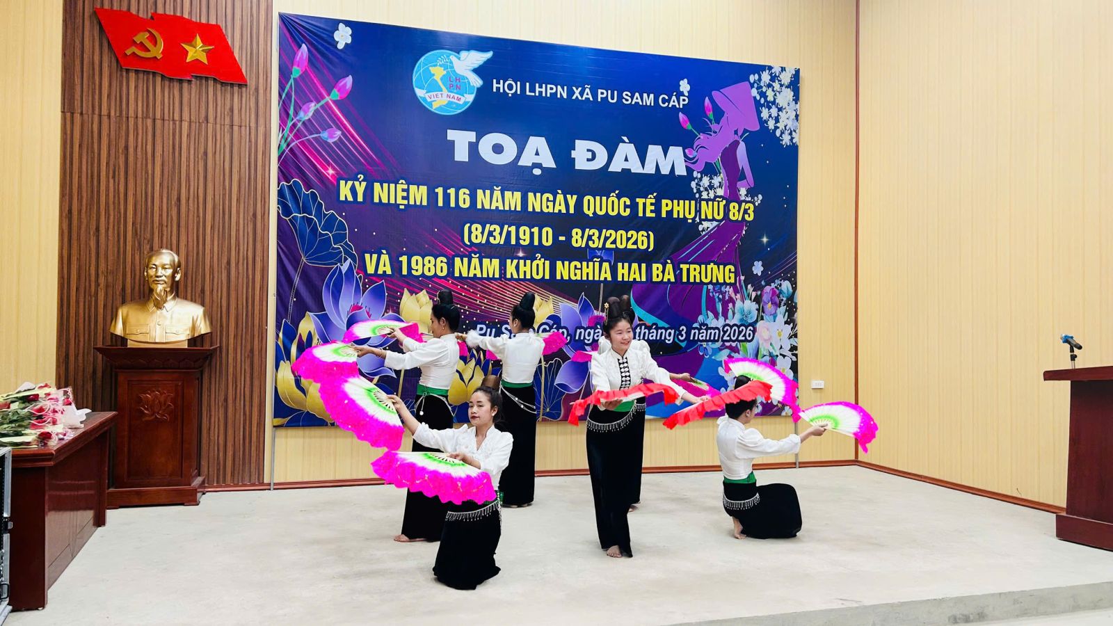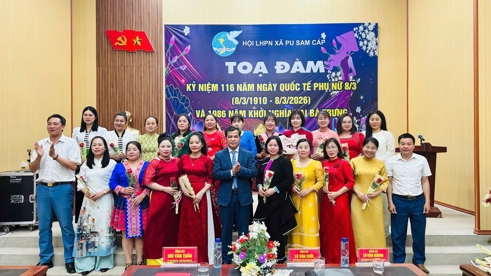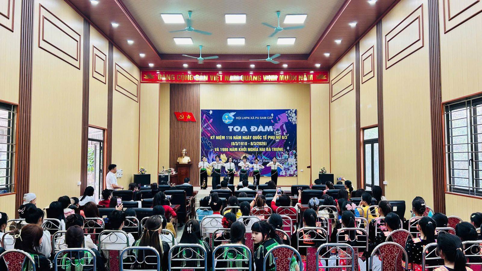 Chiều ngày 06/3/2026, tại Hội trường Nhà văn hóa xã Pu Sam Cáp, Ban Thường vụ Hội Liên hiệp Phụ nữ xã Pu Sam Cáp đã tổ chức buổi tọa đàm kỷ niệm Ngày Quốc tế Phụ nữ 8/3 và 1986 năm Khởi nghĩa Hai Bà Trưng.