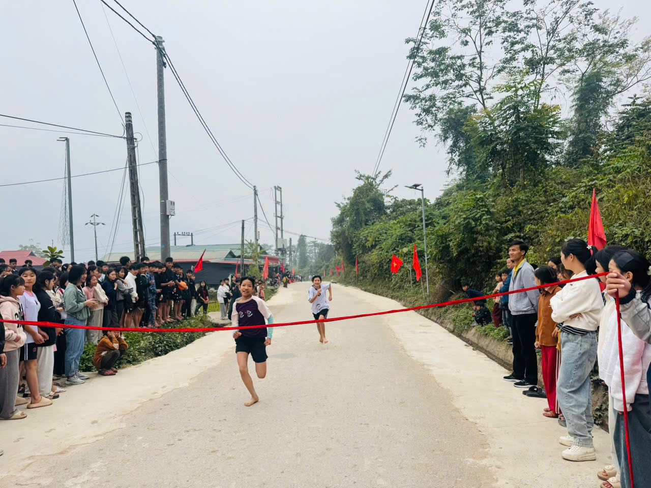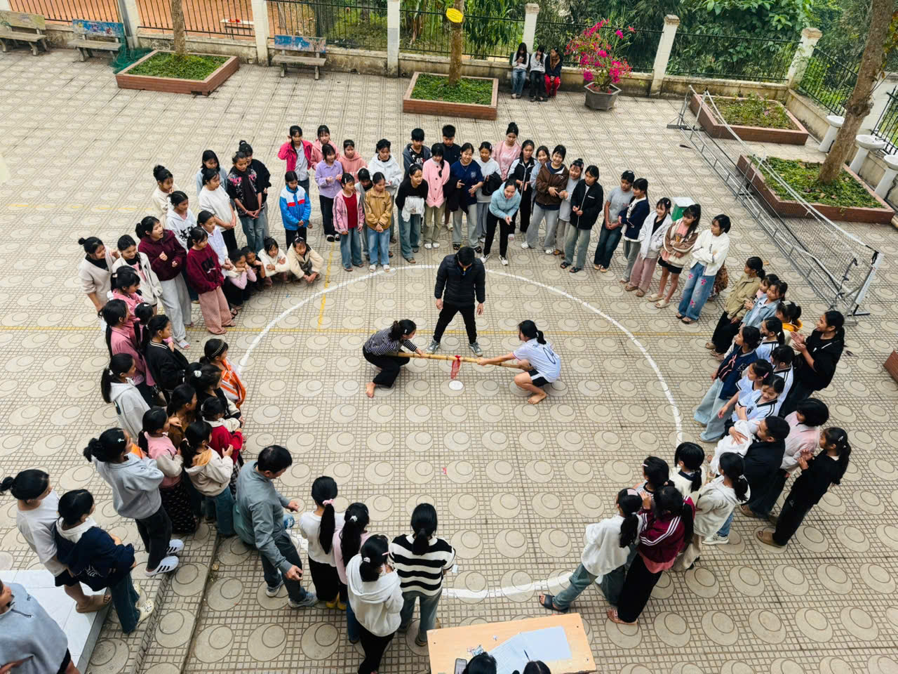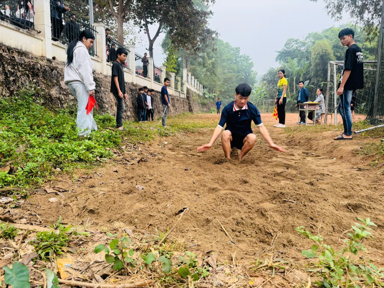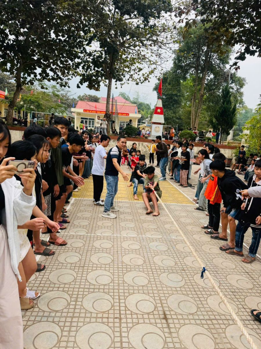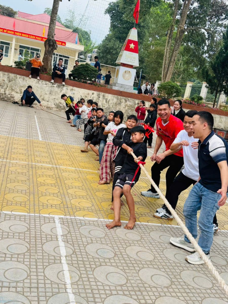 Bên cạnh đó, môn kéo co đã tạo nên một bầu không khí náo nhiệt nhất sân trường. Mỗi lớp cử ra những đội hình mạnh nhất, kết hợp giữa sức mạnh tập thể và sự nhịp nhàng. Tiếng trống giục liên hồi hòa cùng tiếng hô "Một - Hai" vang dội cả một góc rừng núi, những tràng pháo tay của khán giả cổ vũ hết mình cho các vận động viên thể hiện tinh thần đoàn kết tuyệt vời của các em học sinh.