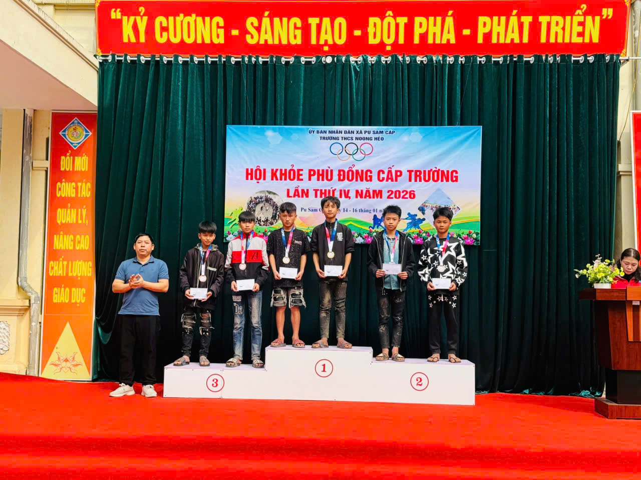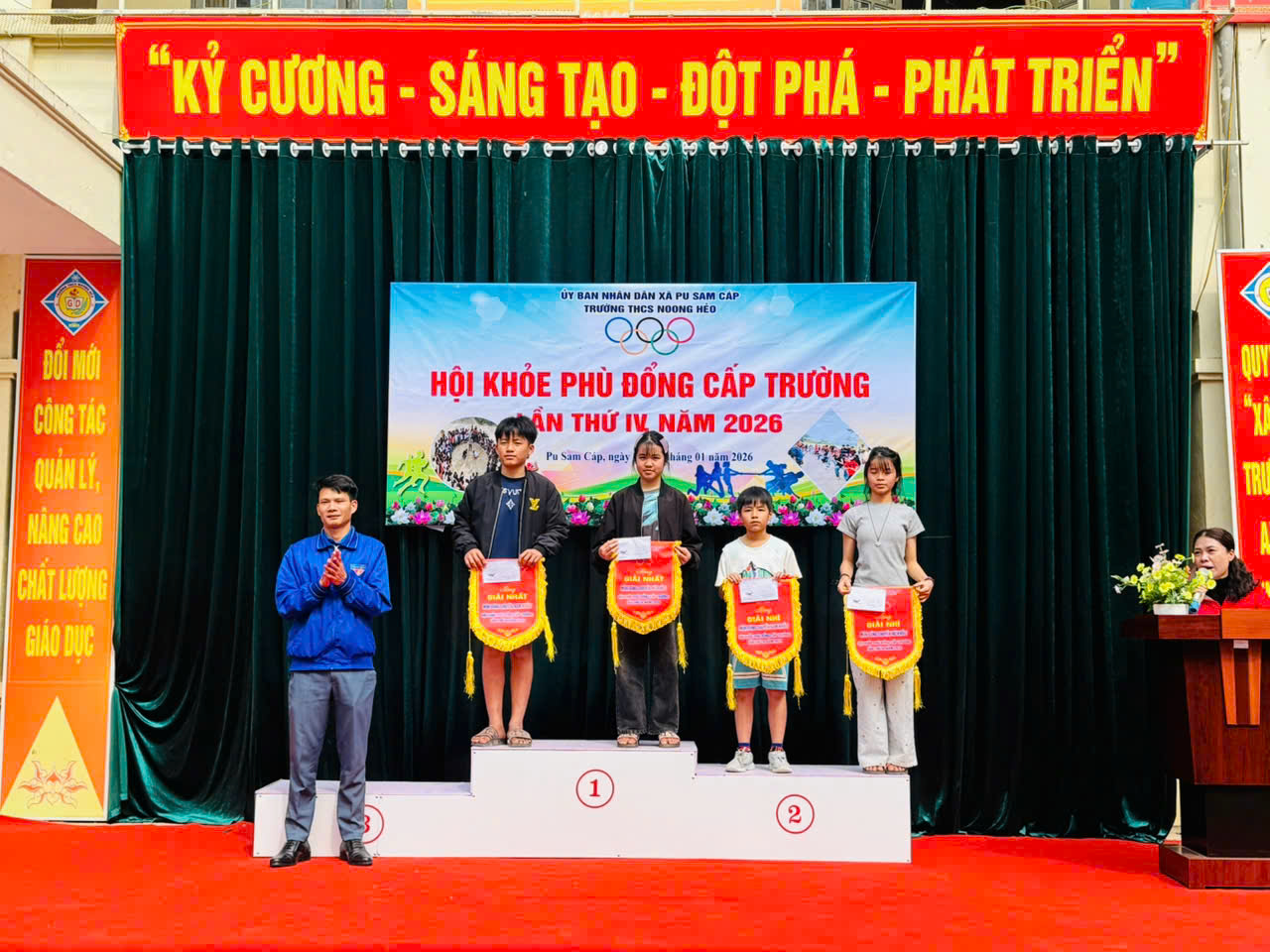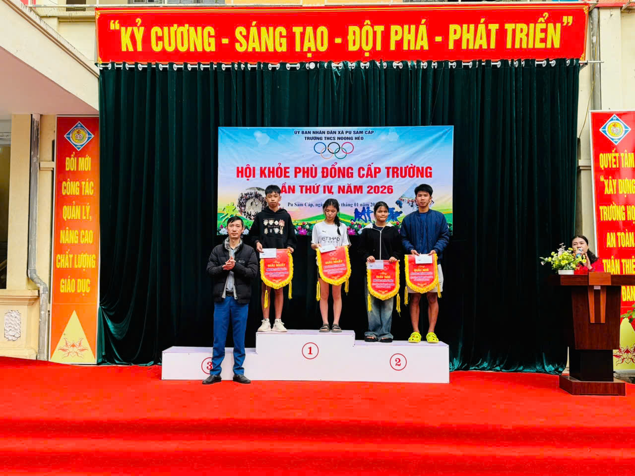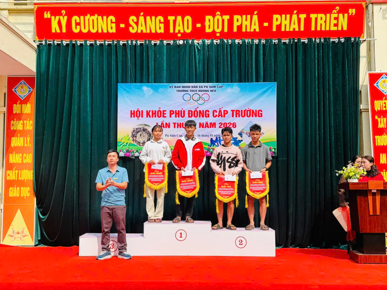 Sau những ngày thi đấu sôi nổi, công tâm và khách quan, Hội khỏe Phù Đổng lần thứ IV của trường THCS Noong Hẻo đã kết thúc. Ban Tổ chức đã tiến hành trao giải cho các cá nhân và tập thể có thành tích xuất sắc: