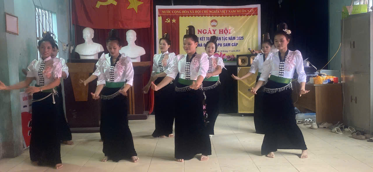 Ngày 18/11/2025, trong không khí phấn khởi hướng về kỷ niệm 95 năm Ngày thành lập Mặt trận Dân tộc thống nhất Việt Nam (18/11/1930 - 18/11/2025), 19/19 bản trên địa bàn xã Pu Sam Cáp đã long trọng tổ chức “Ngày hội Đại đoàn kết toàn dân tộc năm 2025”.