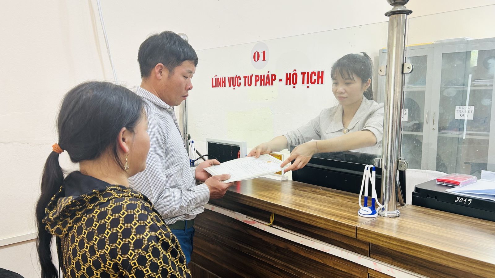 Công chức Trung tâm Phục vụ hành chính công xã Pu Sam Cáp tận tình hướng dẫn người dân giải quyết thủ tục hành chính tại bộ phận Tư pháp - Hộ tịch