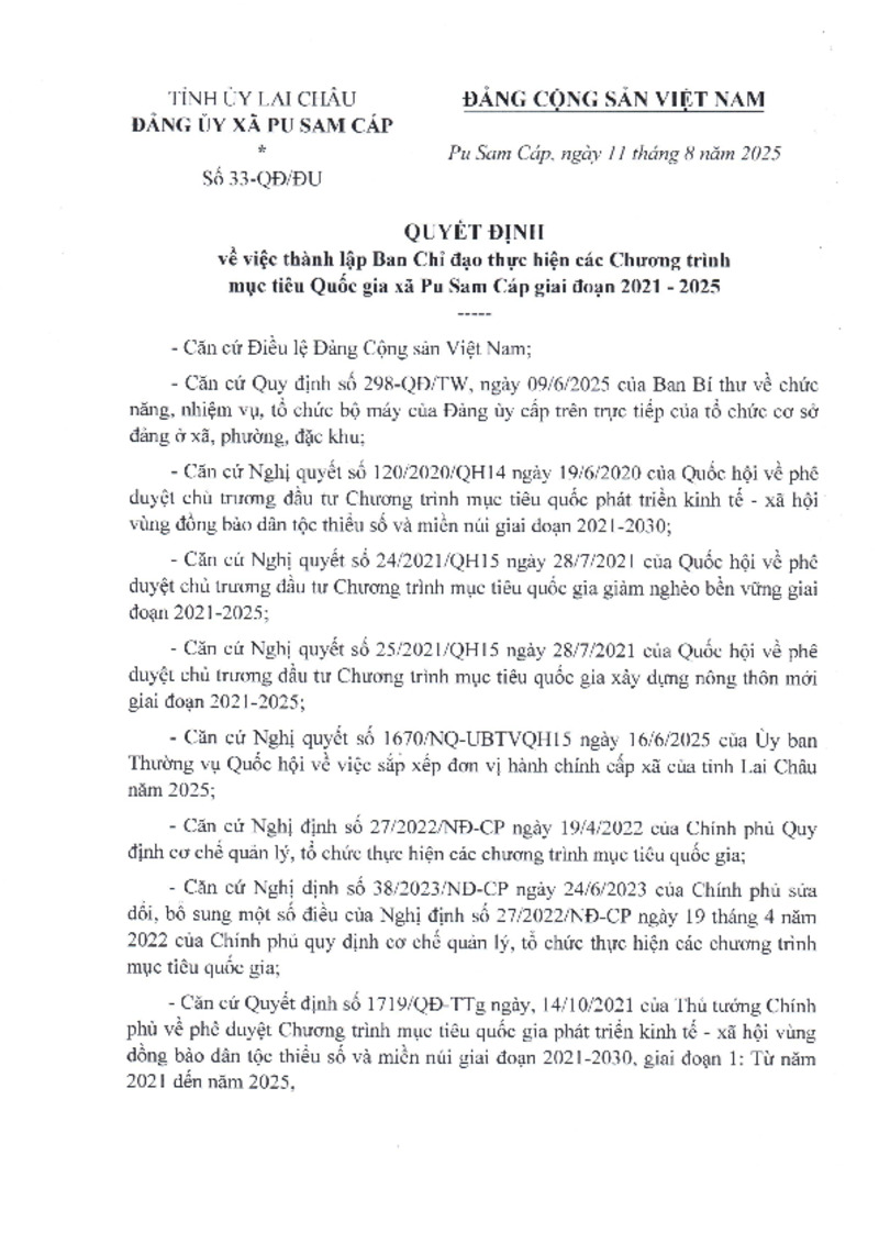 | Tiêu đề văn bản | 33 Quyết định thành lập ban chỉ đạo thực hiện chương trình mục tiêu Quốc gia | ||